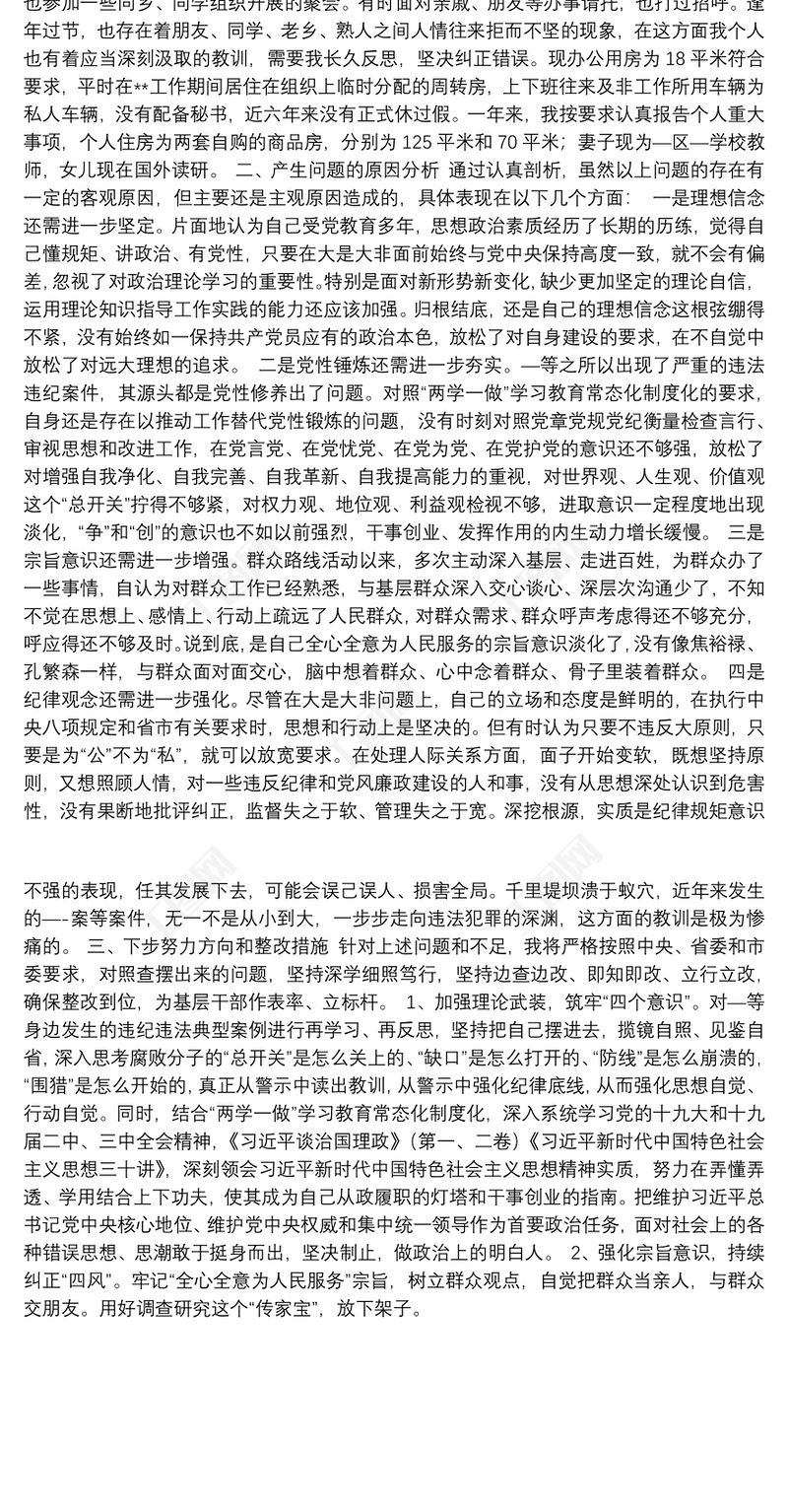 全市典型案例和突出問(wèn)題剖析整改專題民主生活會(huì)發(fā)言提綱 Array
