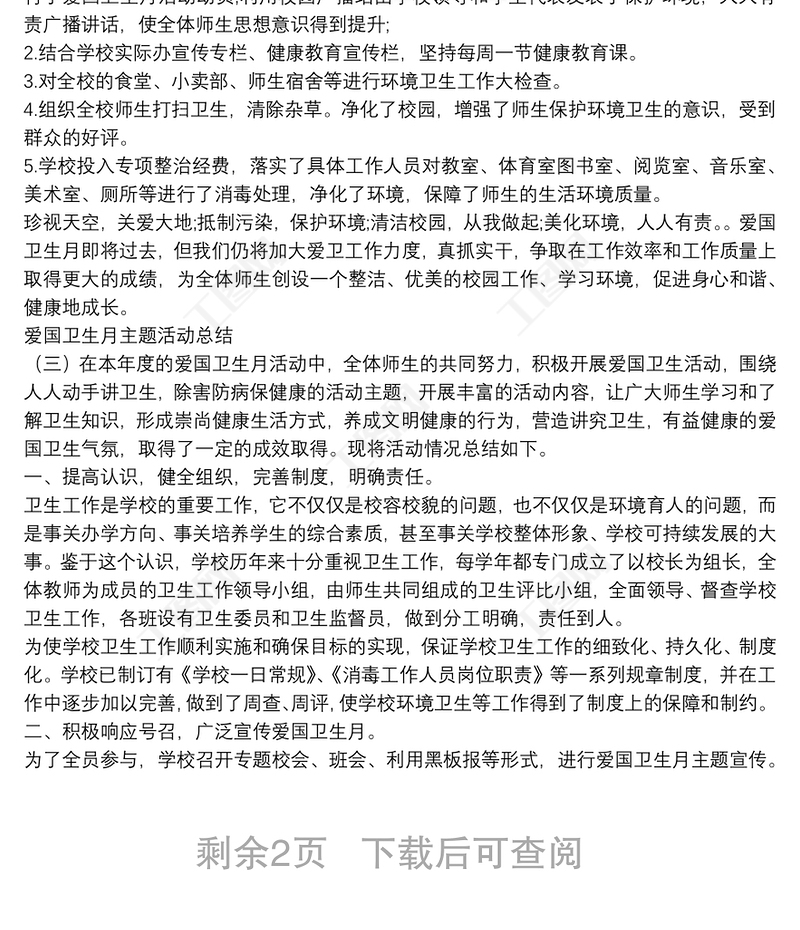 愛國衛(wèi)生月主題活動(dòng)總結(jié)