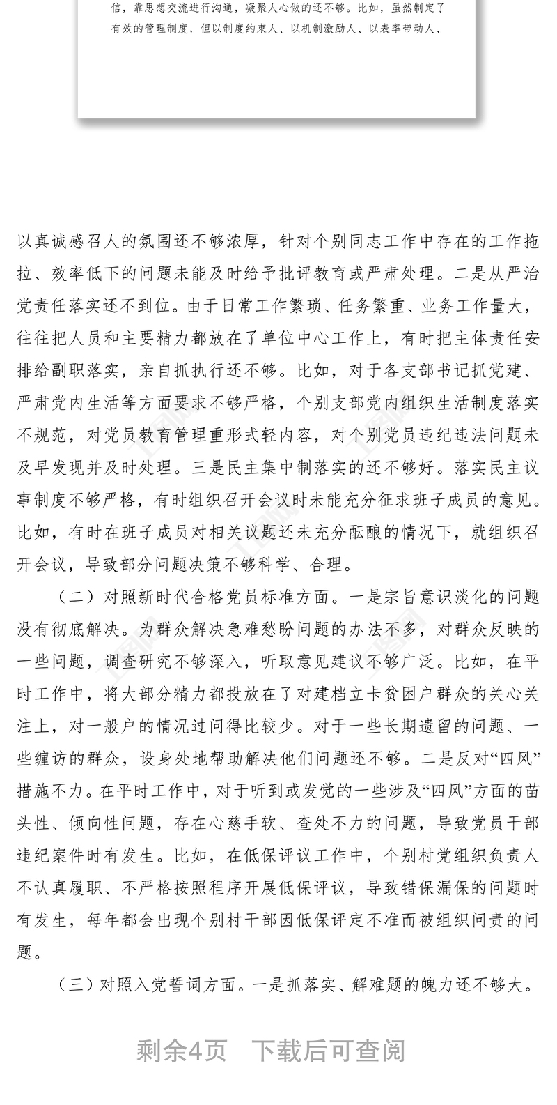 工圖網(wǎng)提供鎮(zhèn)黨委書(shū)記2021年度組織生活會(huì)個(gè)人對(duì)照檢查材料(四個(gè)對(duì)照)供會(huì)員免費(fèi)下載。更多精彩黨課PPT素材,盡在工圖網(wǎng)。