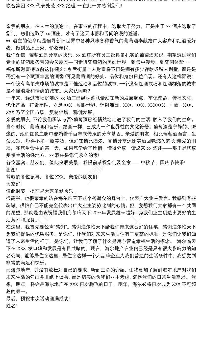 答謝會(huì)客戶(hù)代表發(fā)言稿范文 Array