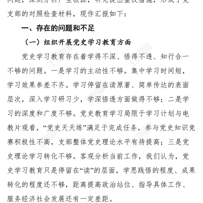 工圖網(wǎng)提供支部“學(xué)黨史 悟思想 辦實事 開新局”黨史學(xué)習(xí)教育專題組織生活會對照檢查材料供會員免費下載。更多精彩黨課PPT素材,盡在工圖網(wǎng)。