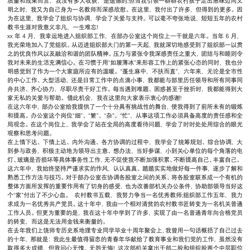 奮斗的人生無(wú)怨無(wú)悔_組織部競(jìng)爭(zhēng)上崗演講稿