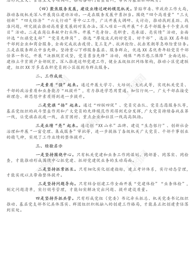 工圖網(wǎng)提供創(chuàng)建模范機(jī)關(guān)工作經(jīng)驗交流材料供會員免費(fèi)下載。更多精彩黨課PPT素材,盡在工圖網(wǎng)。