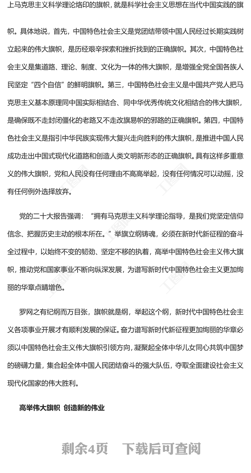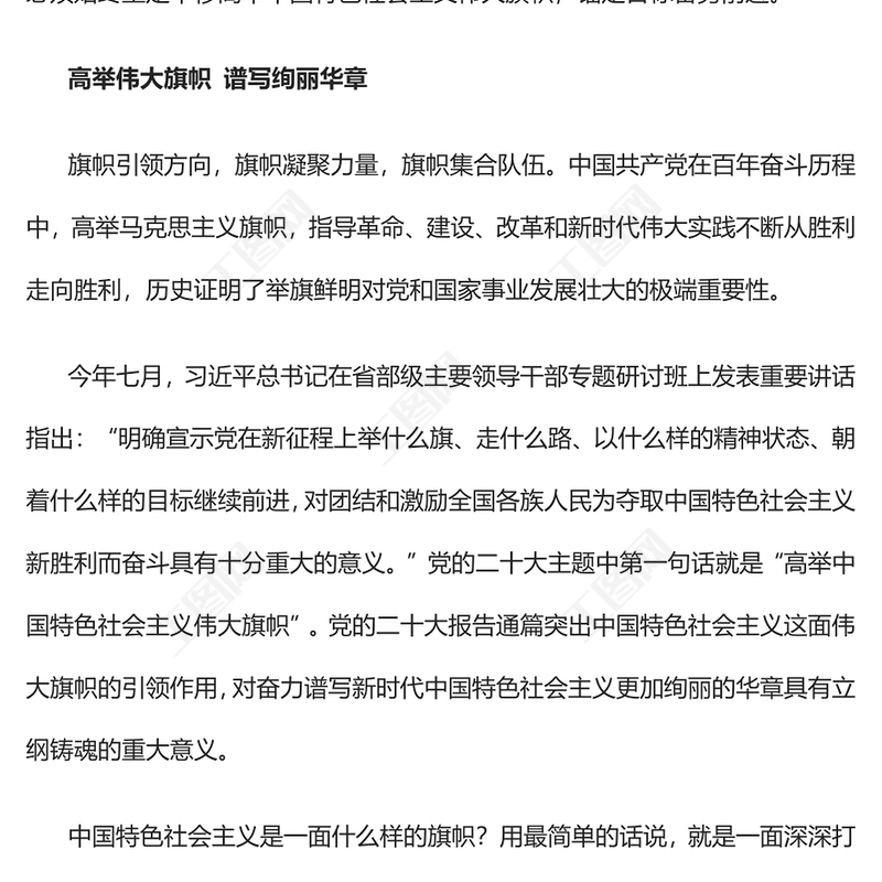 > 黨課講稿 > 2022高舉中國特色社會(huì)主義偉大旗幟PPT大氣黨建風(fēng)黨員干部學(xué)習(xí)教育專題黨課黨建課件(講稿).DOCX 【圖片、文字、動(dòng)畫均可編輯】