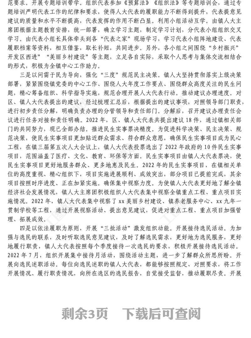首頁 > WORD文檔 > 公文范文 > 鎮(zhèn)人大主席2022年底述職報告.DOCX 【圖片、文字、動畫均可編輯】