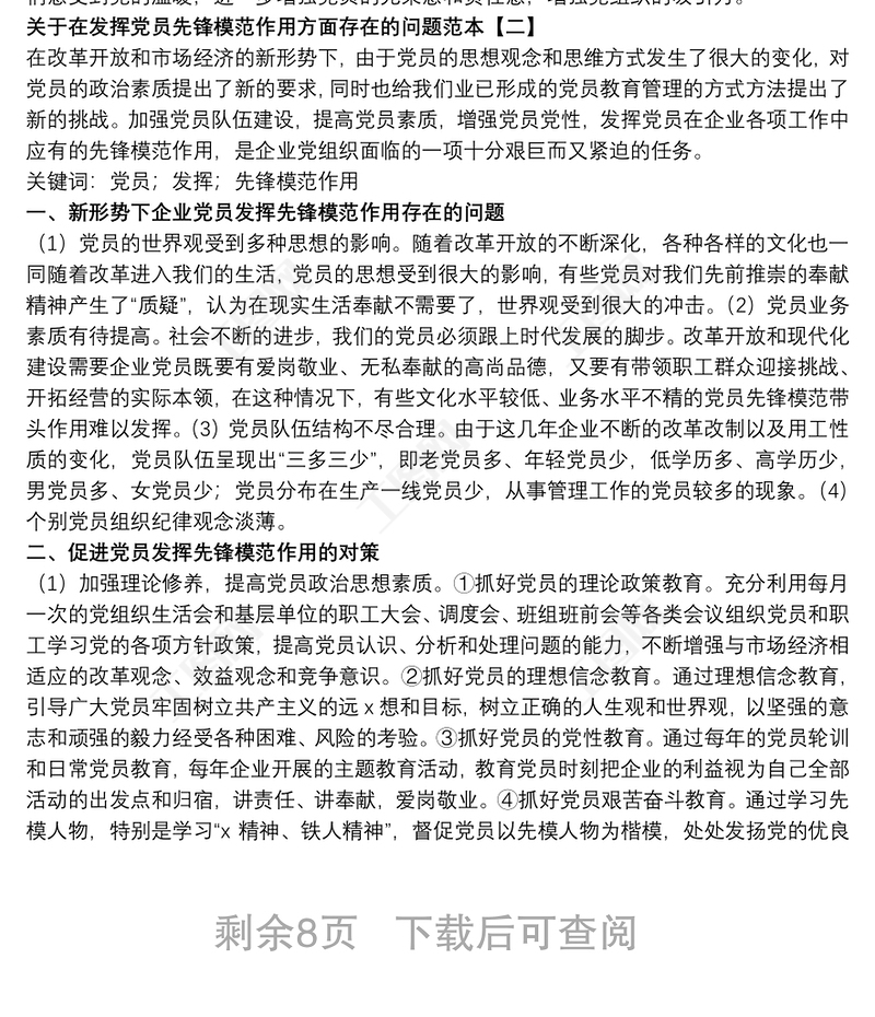 關(guān)于在發(fā)揮黨員先鋒模范作用方面存在的問題范本 Array
