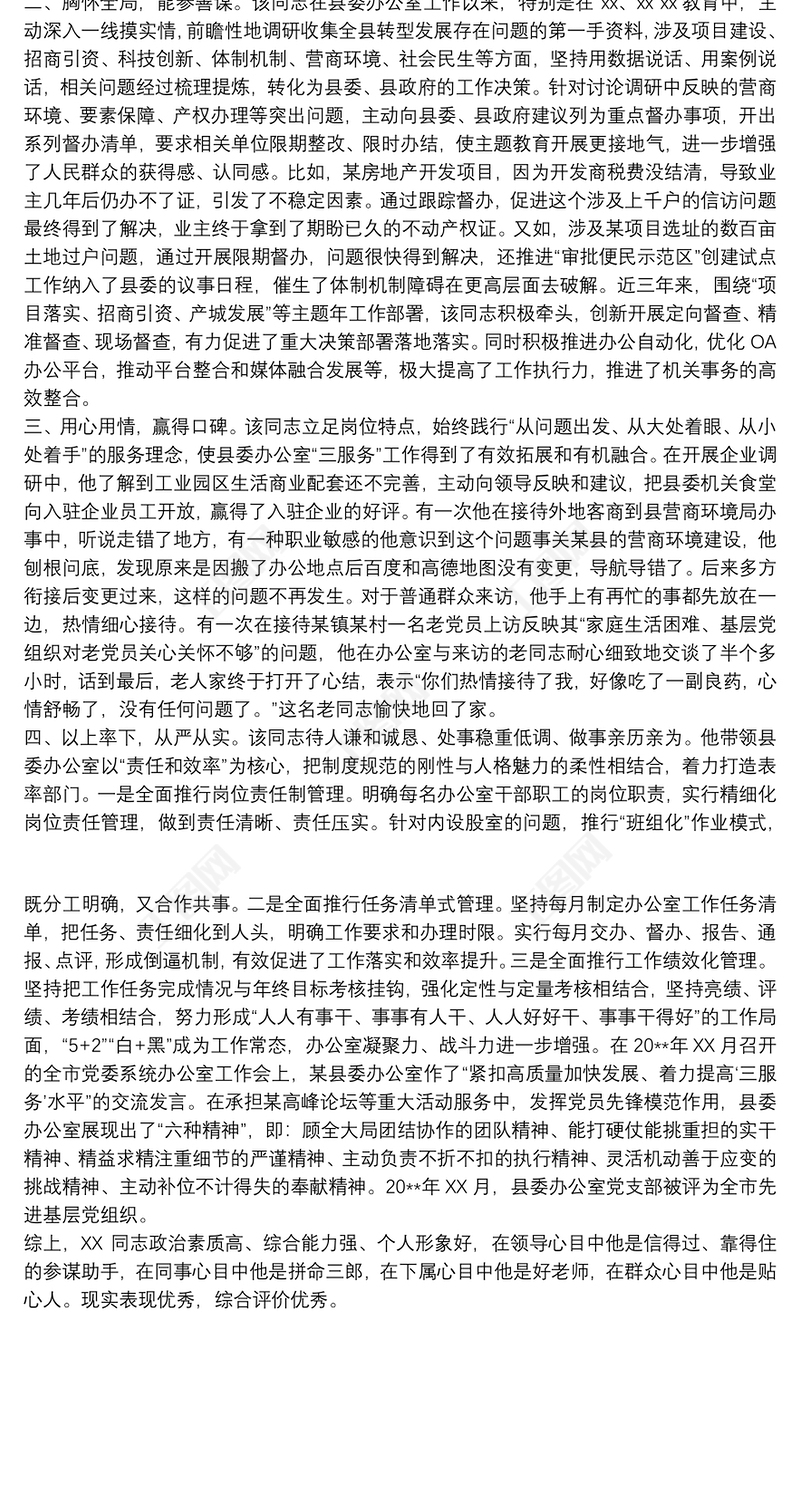 工圖網(wǎng)提供黨員干部提拔考察近三年個人現(xiàn)實表現(xiàn)材料范文供會員免費下載。更多精彩黨課PPT素材,盡在工圖網(wǎng)。