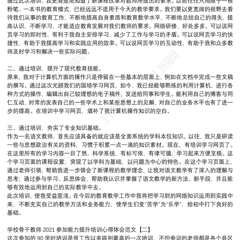 > 心得體會(huì) > 學(xué)校骨干教師2021參加能力提升培訓(xùn)心得體會(huì)范文.DOCX 【圖片、文字、動(dòng)畫(huà)均可編輯】