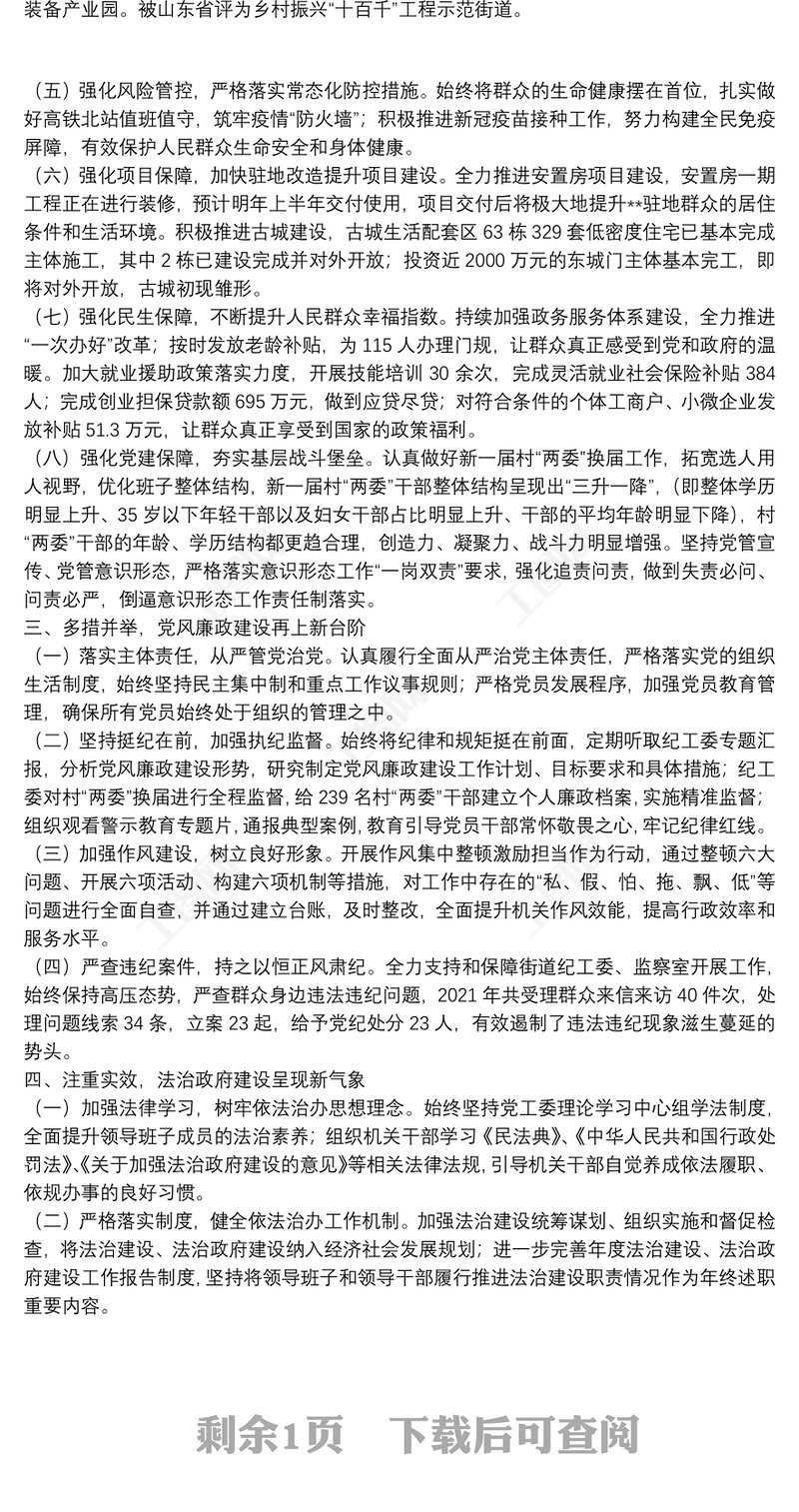 2021年度街道辦事處領(lǐng)導(dǎo)班子工作總結(jié)