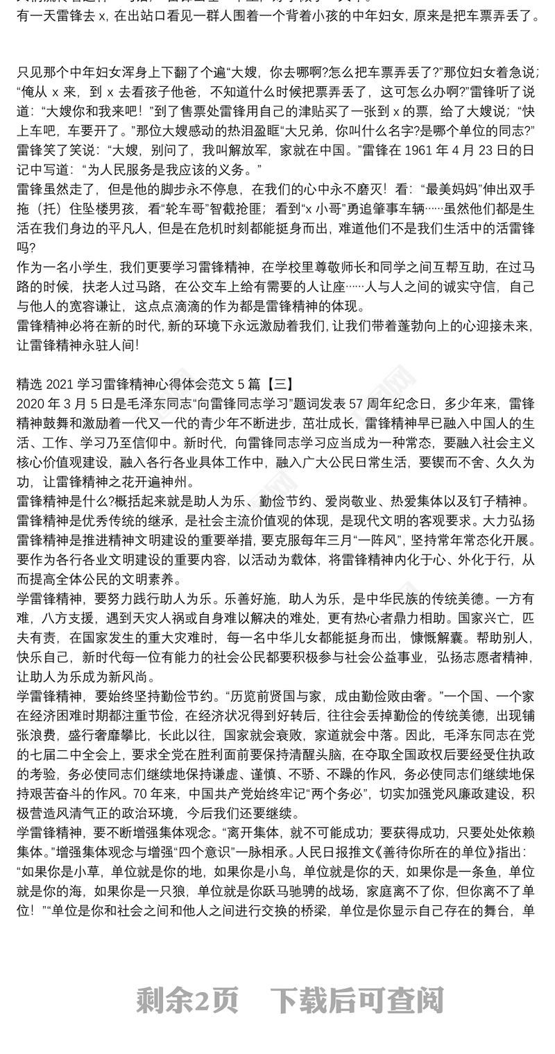 精選2021學(xué)習(xí)雷鋒精神心得體會范文5篇 Array