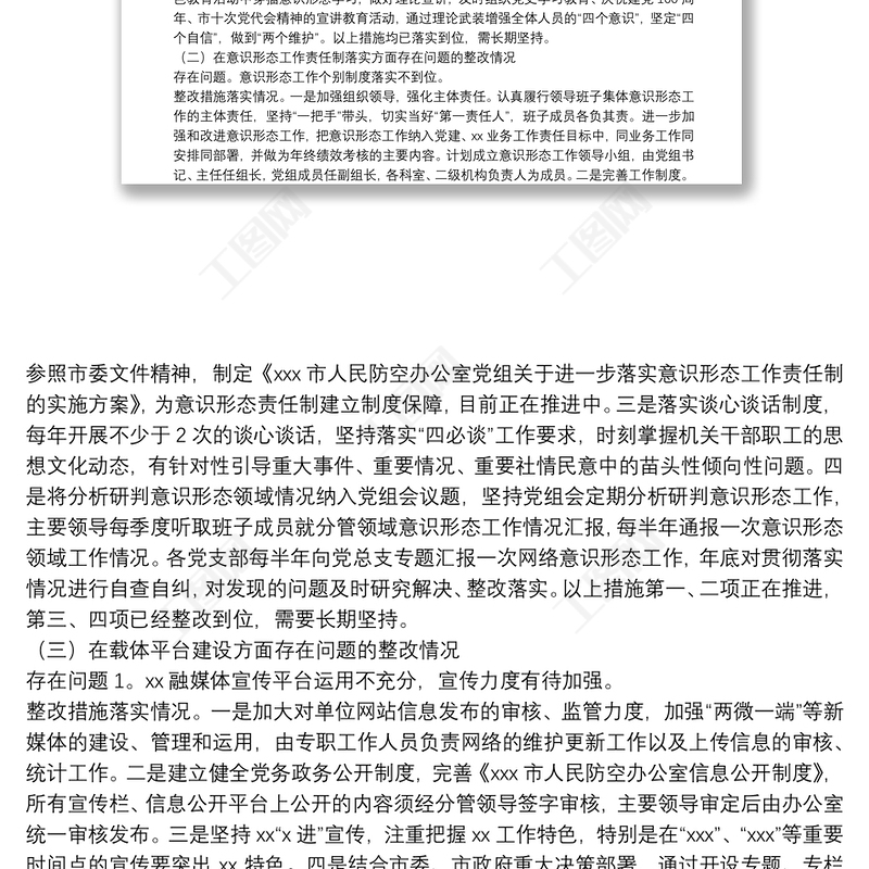 工圖網提供關于市委2021年全市意識形態(tài)領域通報問題的整改報告供會員免費下載。更多精彩黨課PPT素材,盡在工圖網。