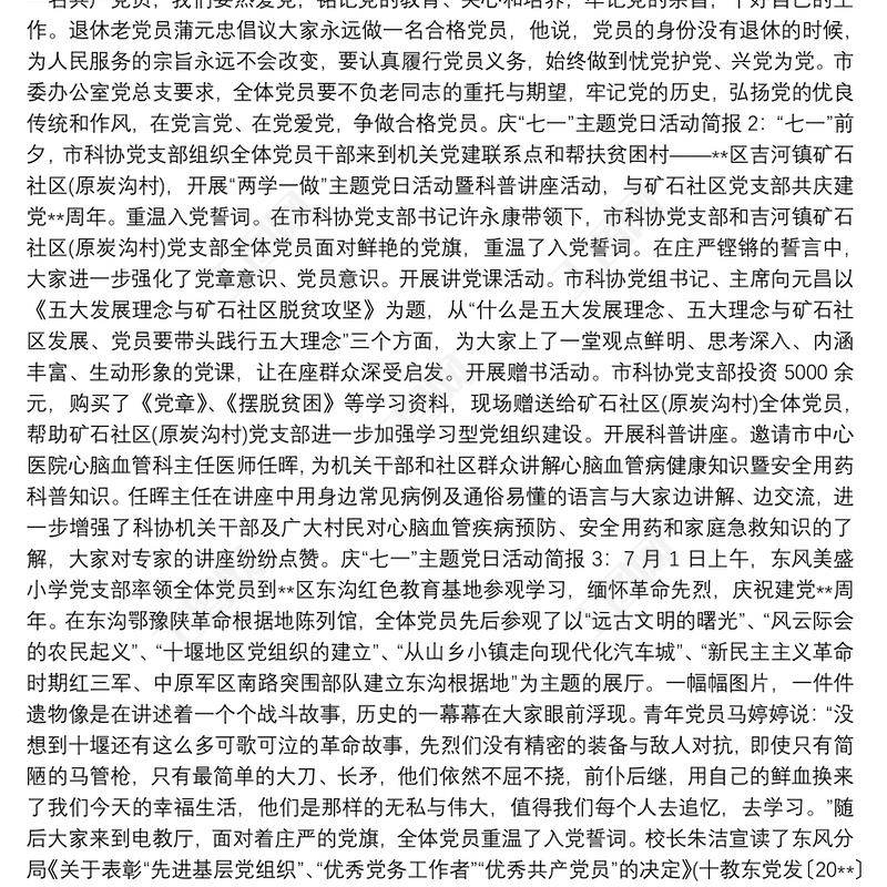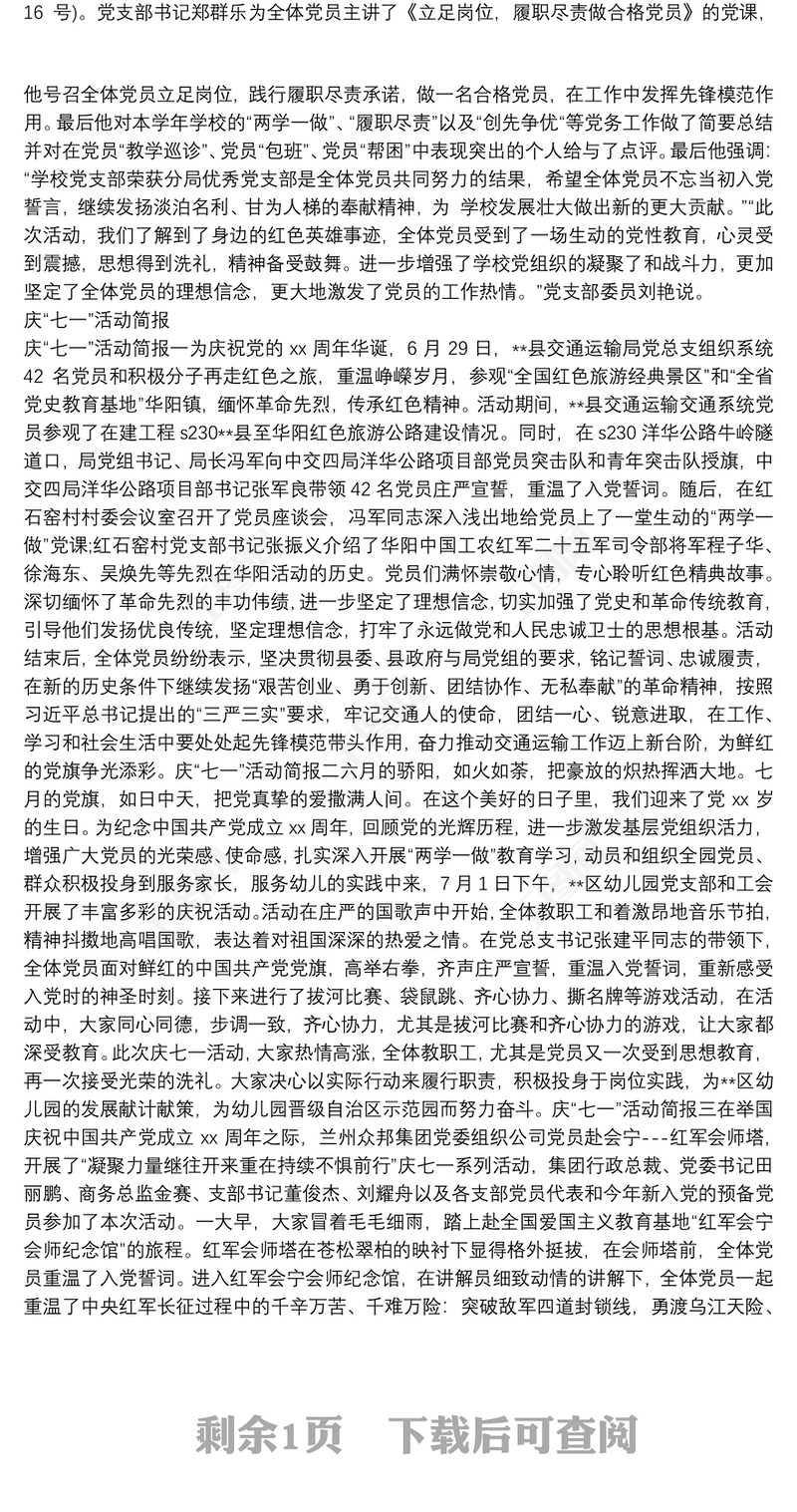 慶“七一”主題黨日活動簡報與慶“七一”活動簡報匯編 Array