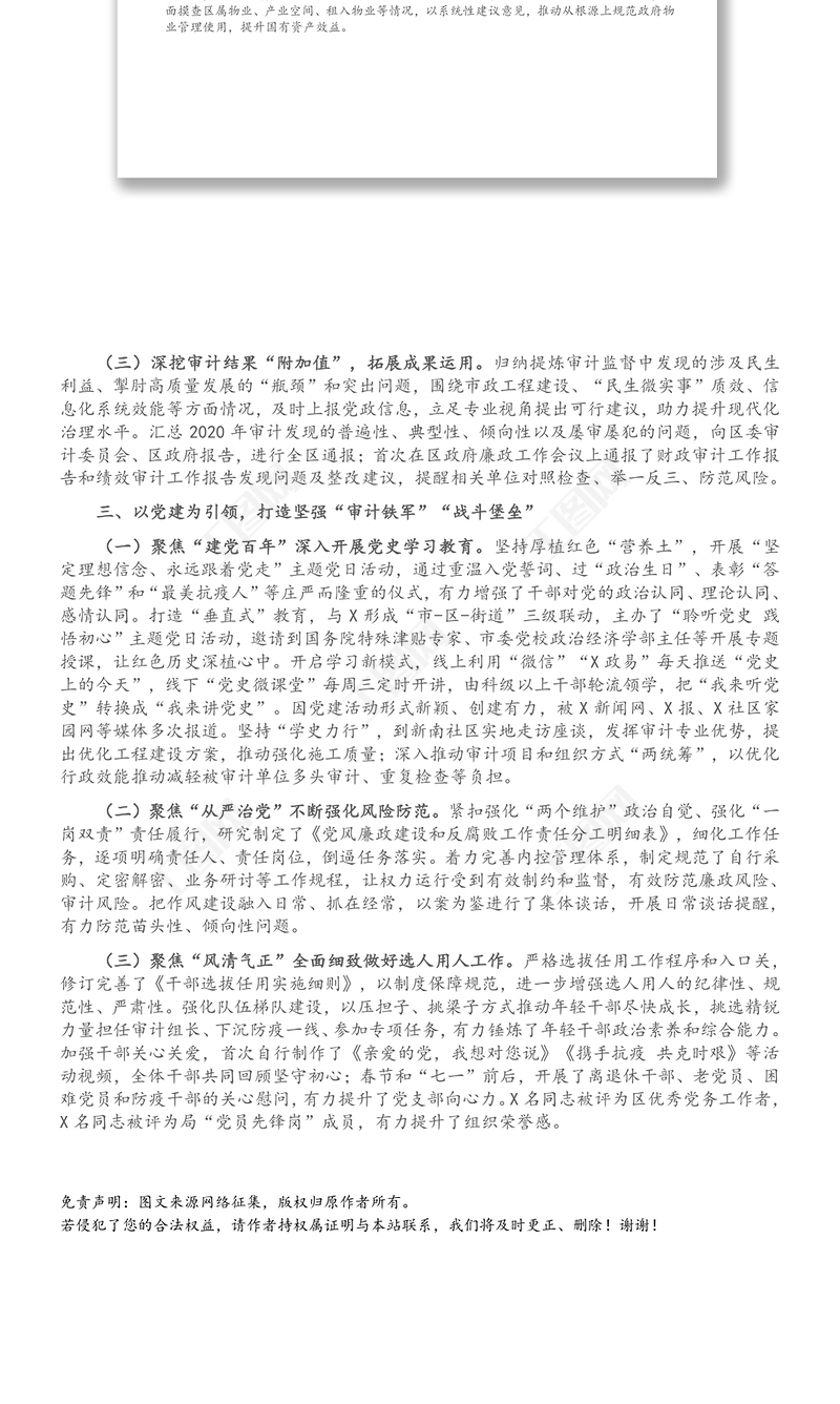 工圖網(wǎng)提供X區(qū)審計(jì)局2020-2021審計(jì)年度工作總結(jié)供會(huì)員免費(fèi)下載。更多精彩黨課PPT素材,盡在工圖網(wǎng)。