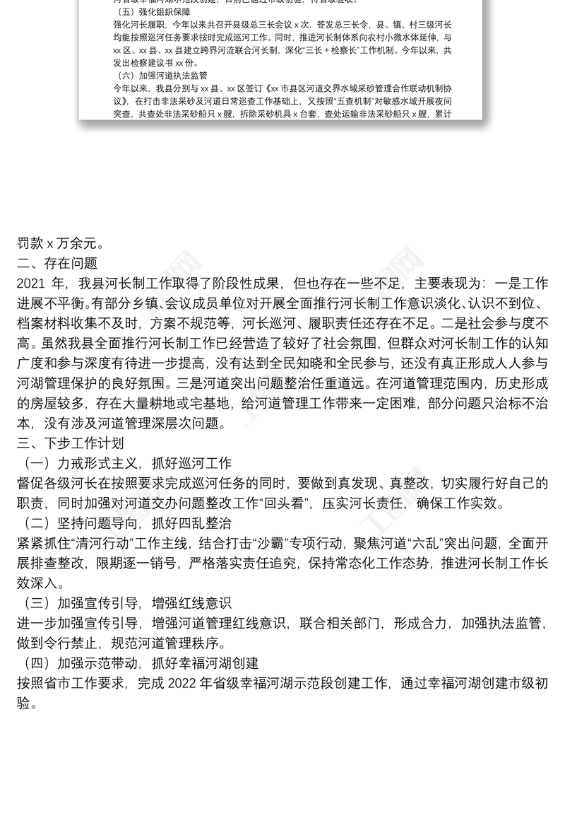 縣全面推行河長制工作2021年工作總結(jié)及下步工作計劃