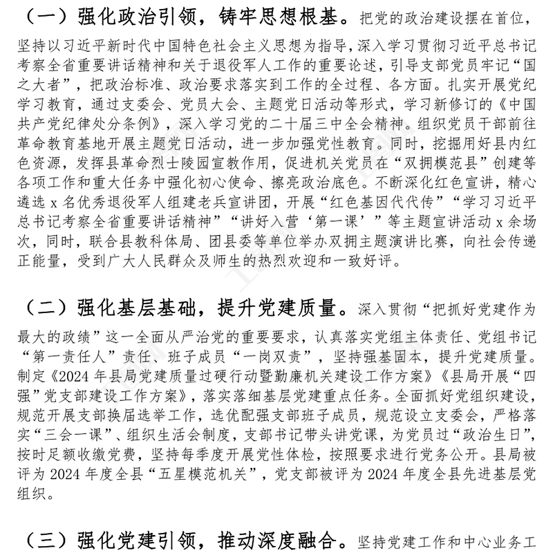 > 退役軍人事務(wù)局2024年落實(shí)全面從嚴(yán)治黨主體責(zé)任工作報(bào)告精選范文.DOCX 【圖片、文字、動(dòng)畫(huà)均可編輯】