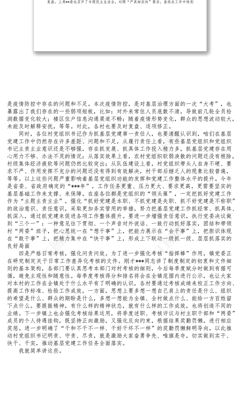 在全鎮(zhèn)2022年一季度基層黨組織書記述職評(píng)議擂臺(tái)賽上的講話