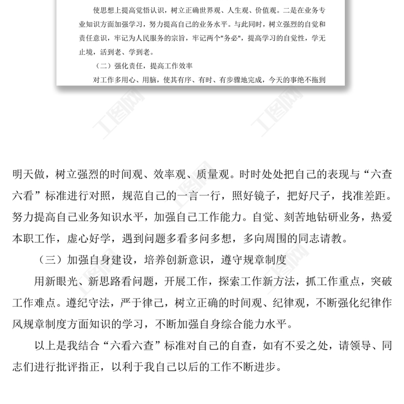 工圖網(wǎng)提供六查六看問題清單及整改措施——“六查六看”個人自查報告供會員免費下載。更多精彩黨課PPT素材,盡在工圖網(wǎng)。
