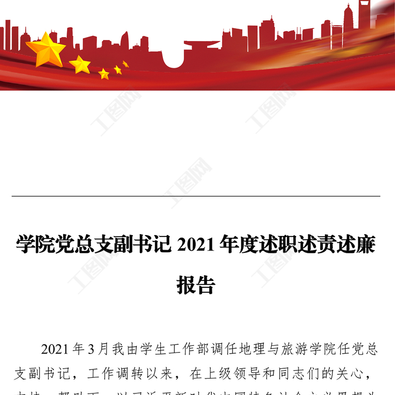 工圖網(wǎng)提供學院黨總支副書記2021年度述職述責述廉報告供會員免費下載。更多精彩黨課PPT素材,盡在工圖網(wǎng)。