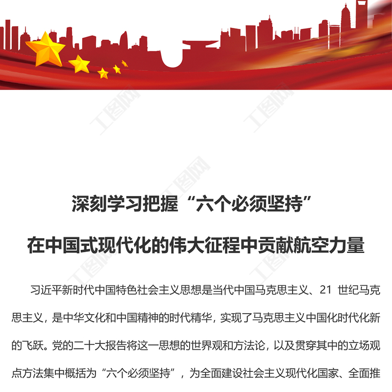 工圖網(wǎng)提供2023深刻學(xué)習(xí)把握“六個必須堅持”在中國式現(xiàn)代化的偉大征程中貢獻航空力量PPT大氣精美風(fēng)黨員干部學(xué)習(xí)教育專題黨建課件(講稿)供會員免費下載。更多精彩黨課PPT素材,盡在工圖網(wǎng)。