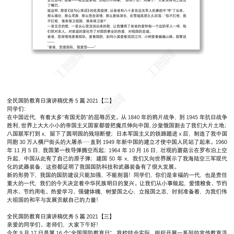 工圖網(wǎng)提供全民國防教育日演講稿優(yōu)秀5篇2021供會員免費下載。更多精彩黨課PPT素材,盡在工圖網(wǎng)。
