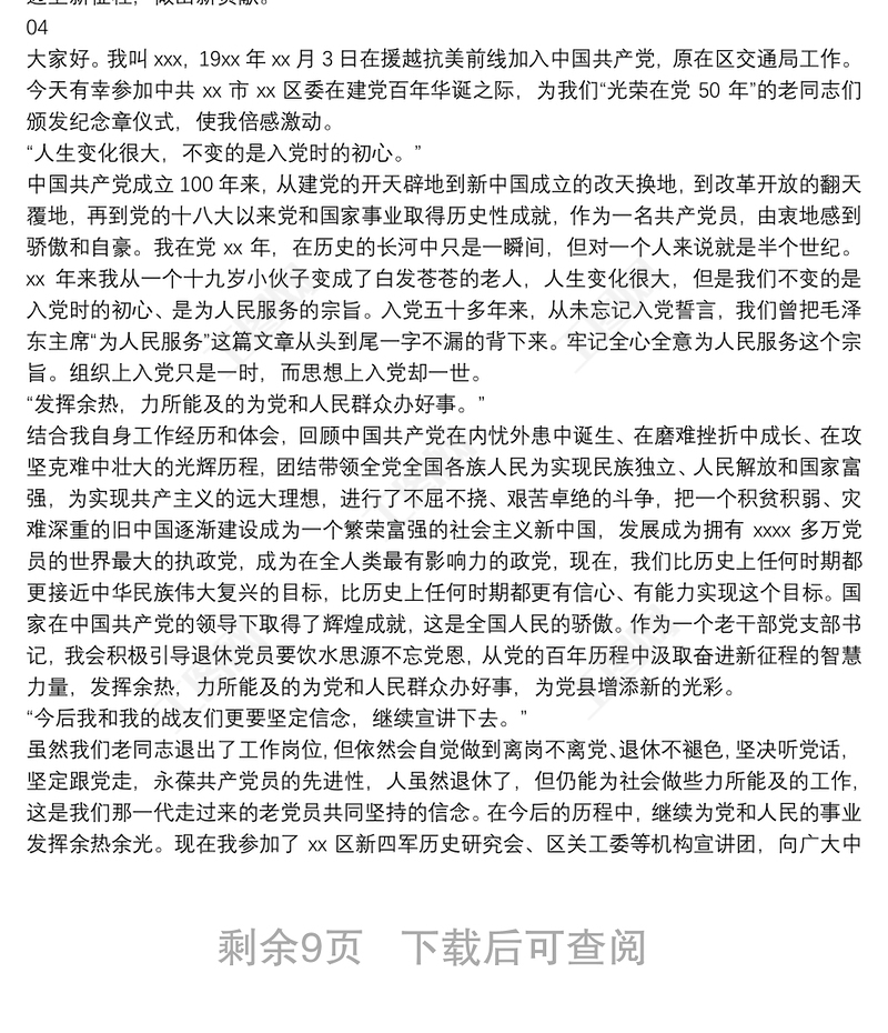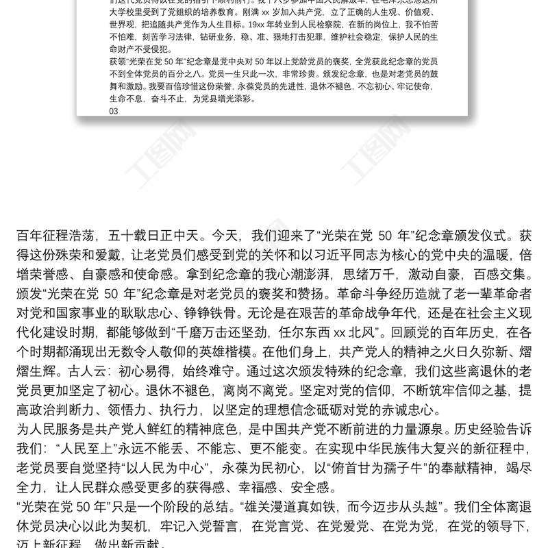 工圖網(wǎng)提供老黨員代表在獲頒“光榮在黨50年”紀(jì)念章儀式上的發(fā)言匯編(20篇)供會(huì)員免費(fèi)下載。更多精彩黨課PPT素材,盡在工圖網(wǎng)。