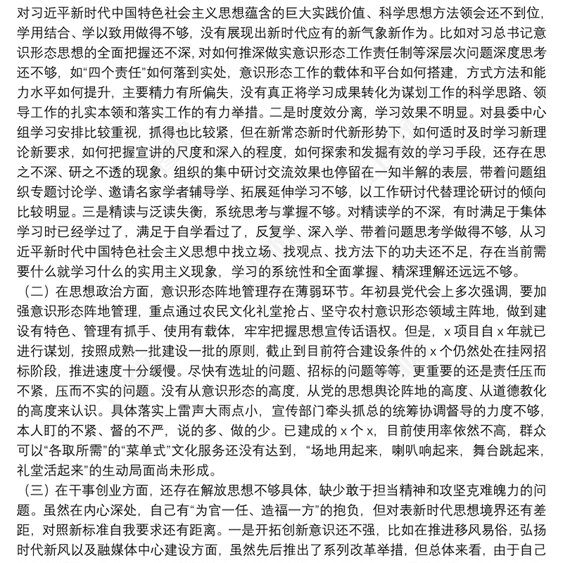 2021xx年度市委民主生活會(huì)發(fā)言提綱及對照檢查材料包含