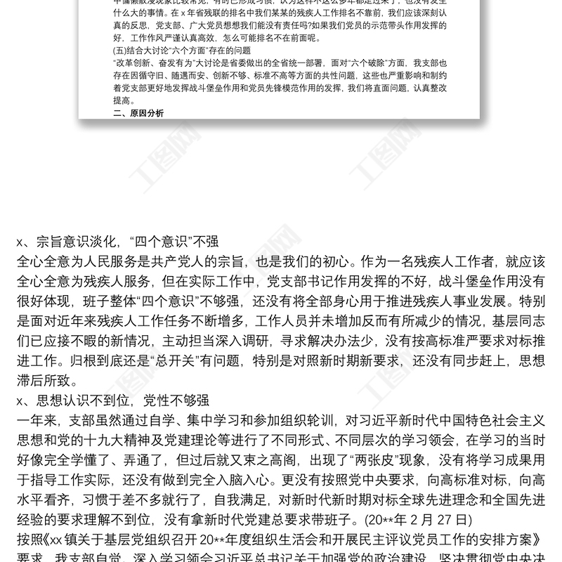 工圖網(wǎng)提供20xx年第一黨支部班子對照檢查材料供會員免費下載。更多精彩黨課PPT素材,盡在工圖網(wǎng)。