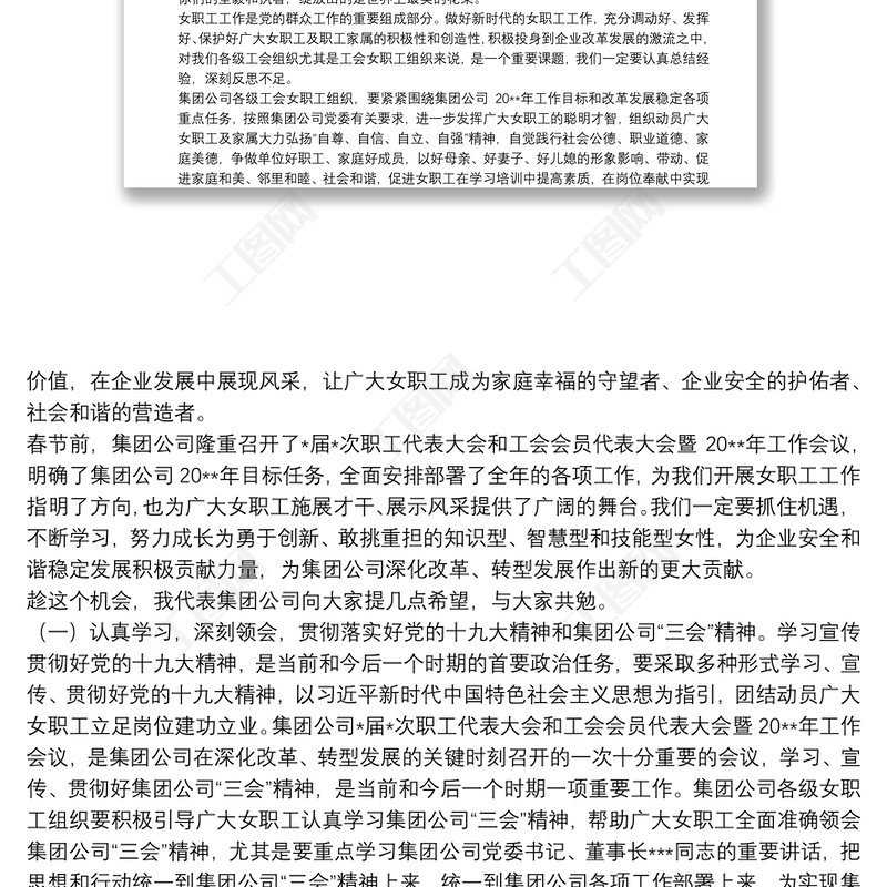 工圖網(wǎng)提供在集團(tuán)公司20**年”三八“婦女節(jié)座談會(huì)暨總結(jié)表彰會(huì)議上的講話供會(huì)員免費(fèi)下載。更多精彩黨課PPT素材,盡在工圖網(wǎng)。