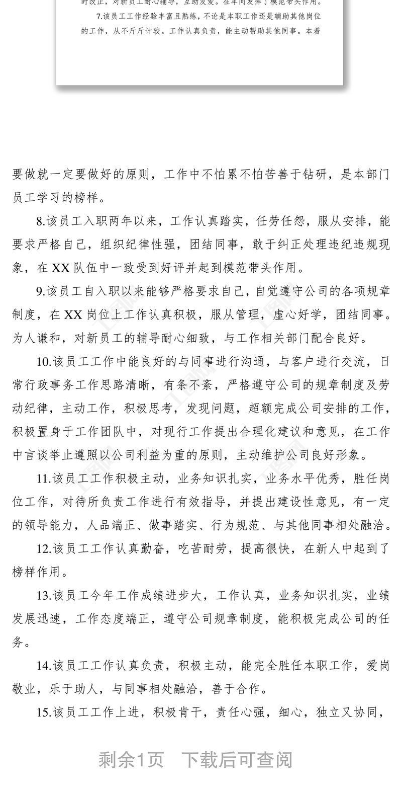2021年度考核評語(15條)(公司企業(yè)員工)