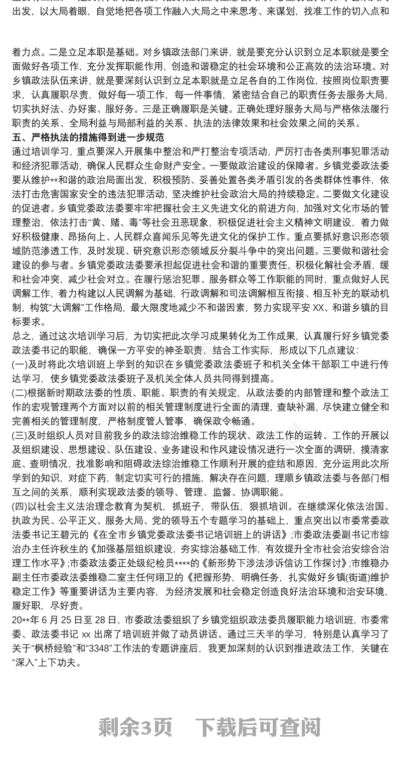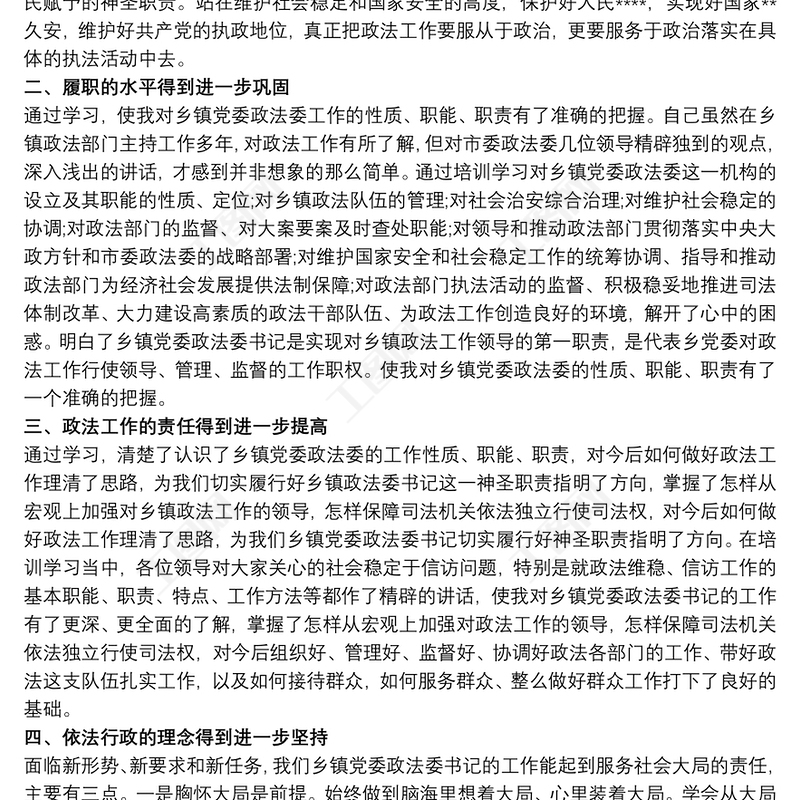 鄉(xiāng)鎮(zhèn)黨組織政法委員培訓(xùn)班心得體會