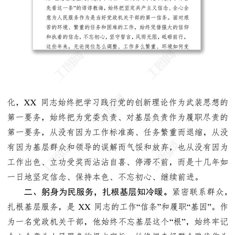 工圖網(wǎng)提供公文寫(xiě)作領(lǐng)導(dǎo)干部個(gè)人先進(jìn)事跡材料供會(huì)員免費(fèi)下載。更多精彩黨課PPT素材,盡在工圖網(wǎng)。