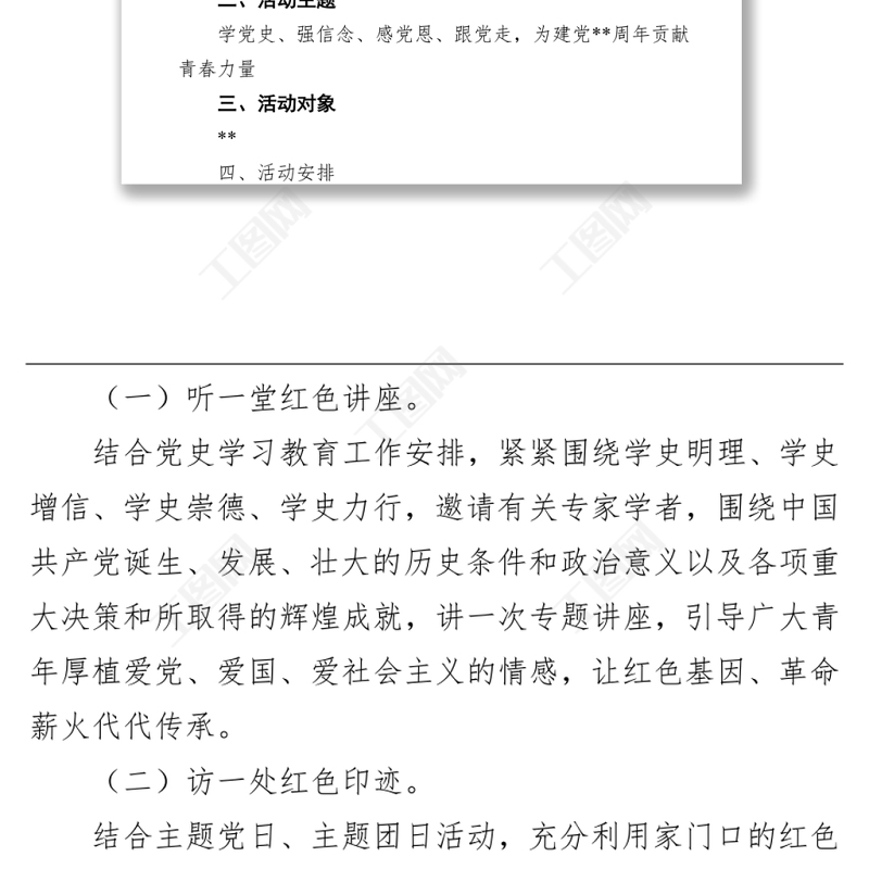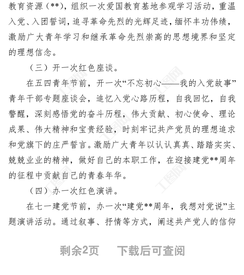 工圖網(wǎng)提供關(guān)于開(kāi)展2022年紀(jì)念“五四”運(yùn)動(dòng)系列活動(dòng)實(shí)施方案供會(huì)員免費(fèi)下載。更多精彩黨課PPT素材,盡在工圖網(wǎng)。