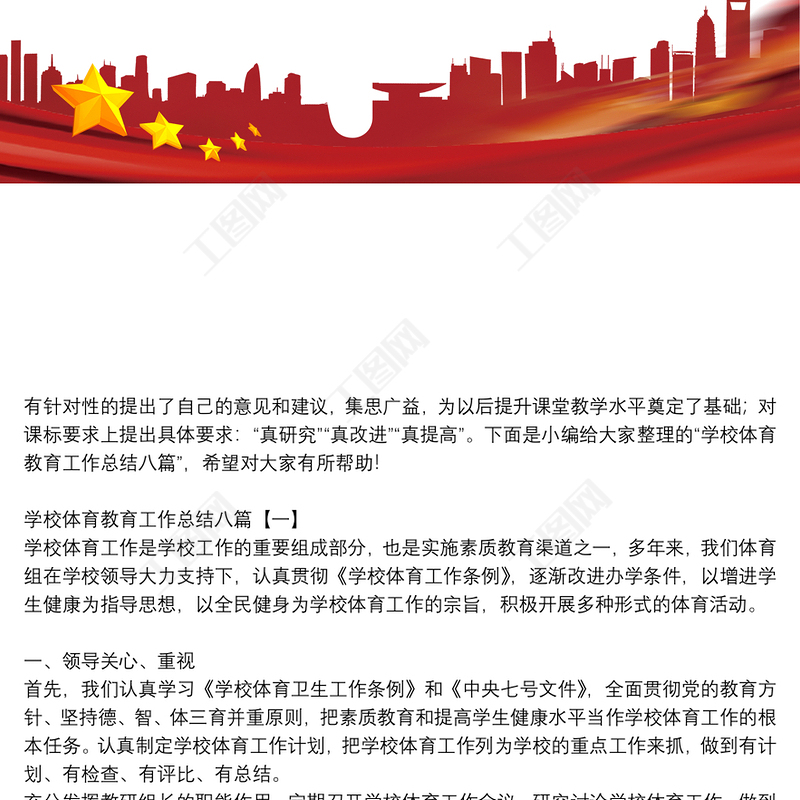 工圖網(wǎng)提供學(xué)校體育教育工作總結(jié)八篇供會員免費下載。更多精彩黨課PPT素材,盡在工圖網(wǎng)。