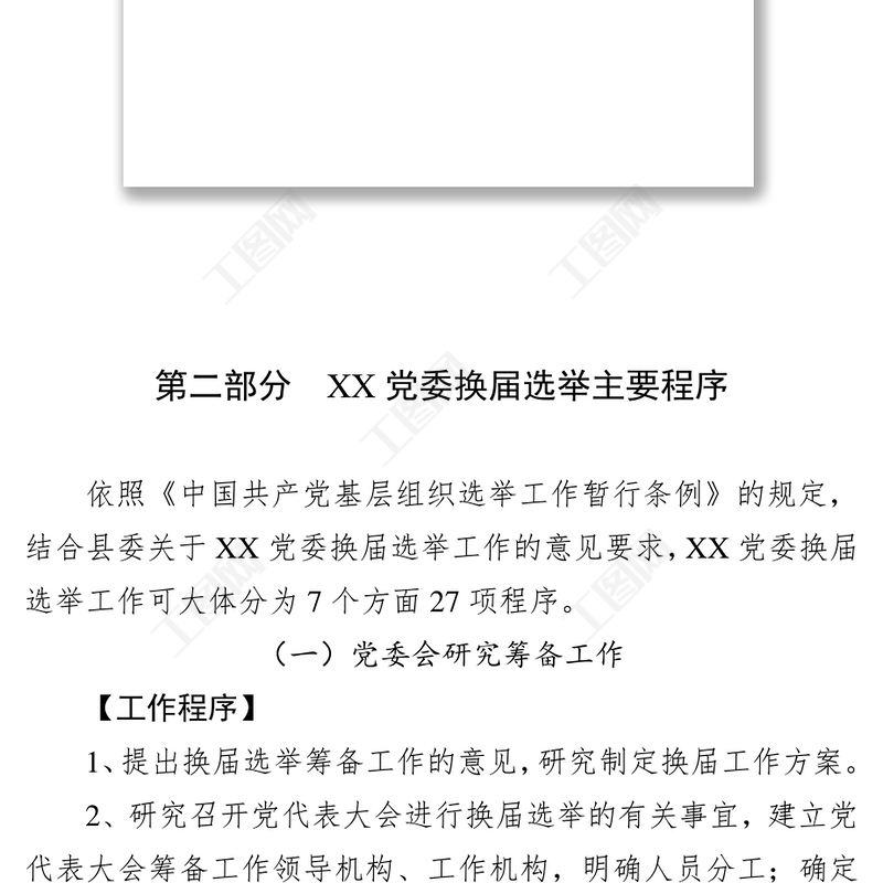 工圖網(wǎng)提供2017年XX黨委換屆選舉流程供會員免費(fèi)下載。更多精彩黨課PPT素材,盡在工圖網(wǎng)。
