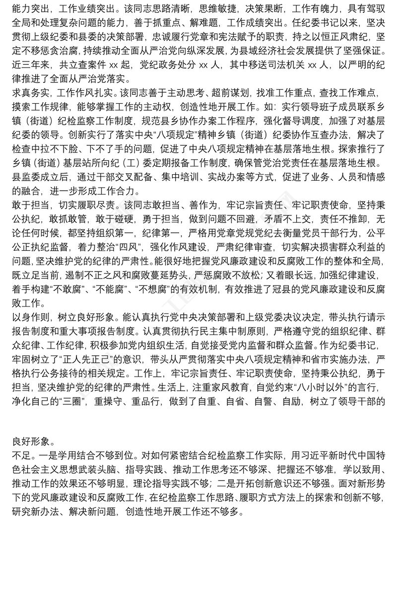 紀(jì)委書(shū)記現(xiàn)實(shí)表現(xiàn)材料