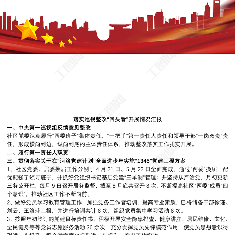 工圖網(wǎng)提供落實(shí)巡視整改“回頭看”開展情況匯報(bào)供會(huì)員免費(fèi)下載。更多精彩黨課PPT素材,盡在工圖網(wǎng)。