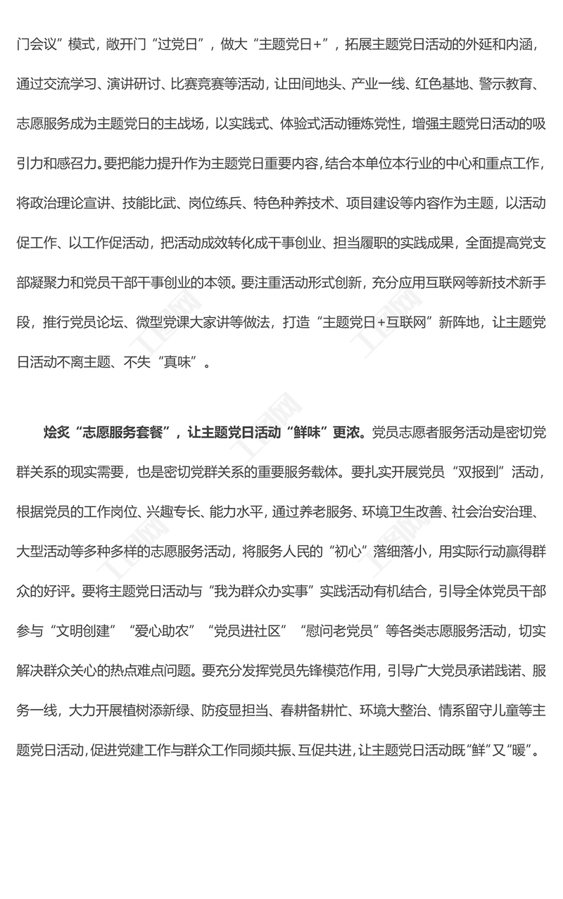 工圖網(wǎng)提供“三大套餐”讓主題黨日提質(zhì)增“味”(學(xué)習(xí)心得)供會(huì)員免費(fèi)下載。更多精彩黨課PPT素材,盡在工圖網(wǎng)。