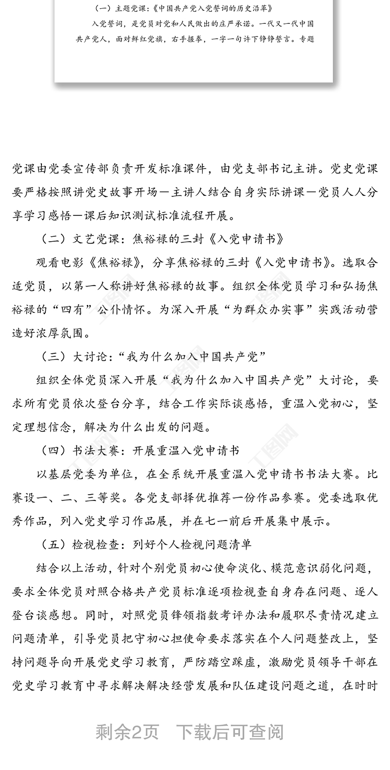 黨史黨日活動方案主題黨日活動方案回憶入黨故事重溫入黨誓詞公開承諾踐諾黨史學(xué)習(xí)教育素材包含