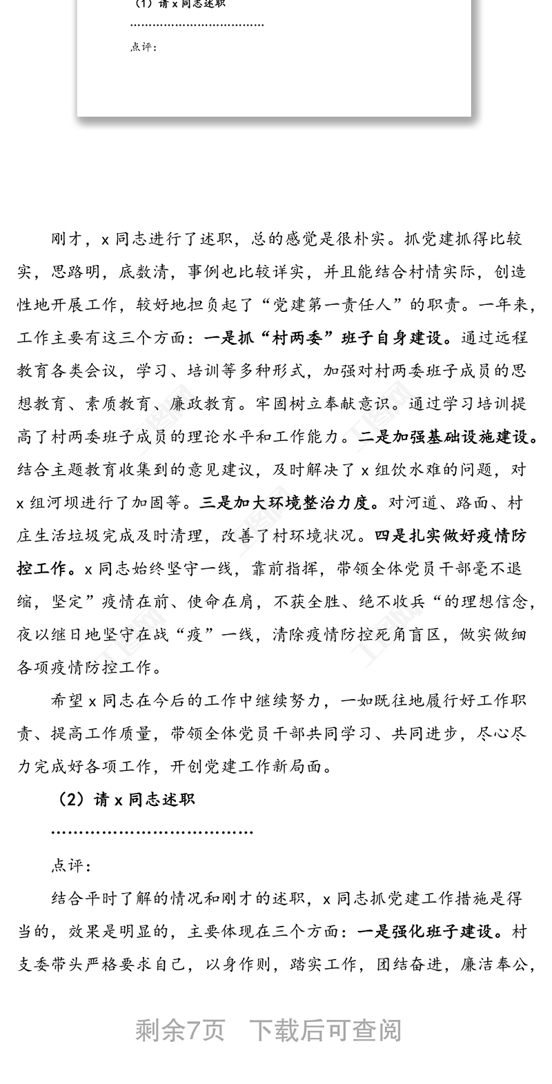 在村黨組織書記抓基層黨建述職會上的主持詞及點(diǎn)評講話包含