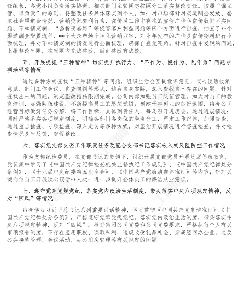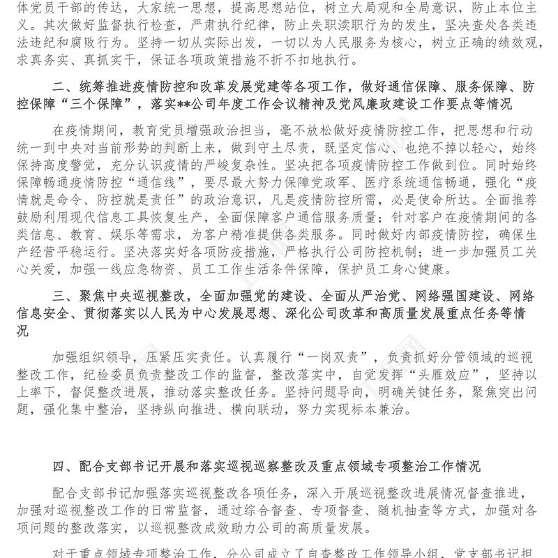 紀(jì)檢委員落實全面從嚴(yán)治黨主體責(zé)任情況報告