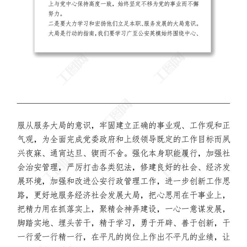 工圖網(wǎng)提供公安機(jī)關(guān)英模教育學(xué)習(xí)心得體會供會員免費(fèi)下載。更多精彩黨課PPT素材,盡在工圖網(wǎng)。