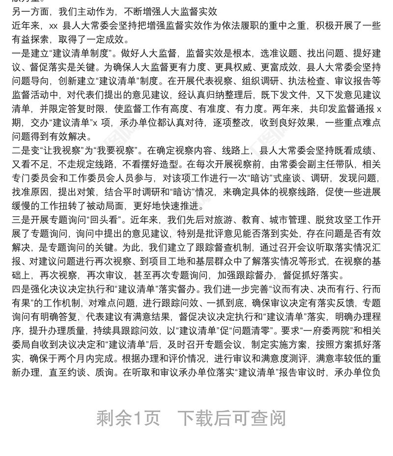 發(fā)揮人大代表作用增強人大監(jiān)督實效-在人大工作交流匯報會上的發(fā)言包含