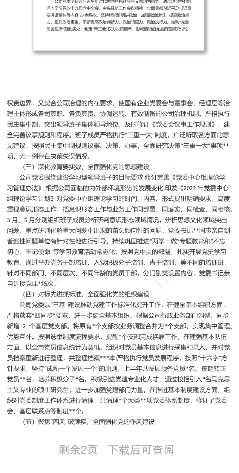 公司黨委2022年上半年黨建工作報告,公司黨委2022年上半年黨建工作報告 Array