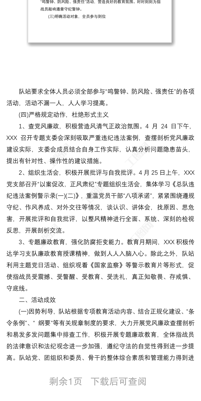 > 總結(jié) > 2021“鳴警鐘防風(fēng)險(xiǎn)強(qiáng)責(zé)任”集中警示教育月活動(dòng)工作總結(jié)范文.DOCX 【圖片、文字、動(dòng)畫(huà)均可編輯】