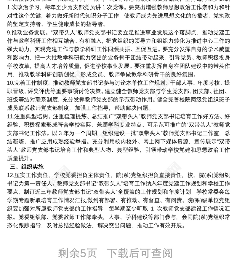 教師黨支部書記“雙帶頭人”培育工程實施方案