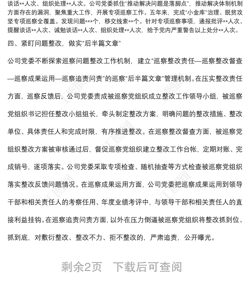 某國(guó)有企業(yè)黨委一屆任期巡察工作總結(jié)報(bào)告