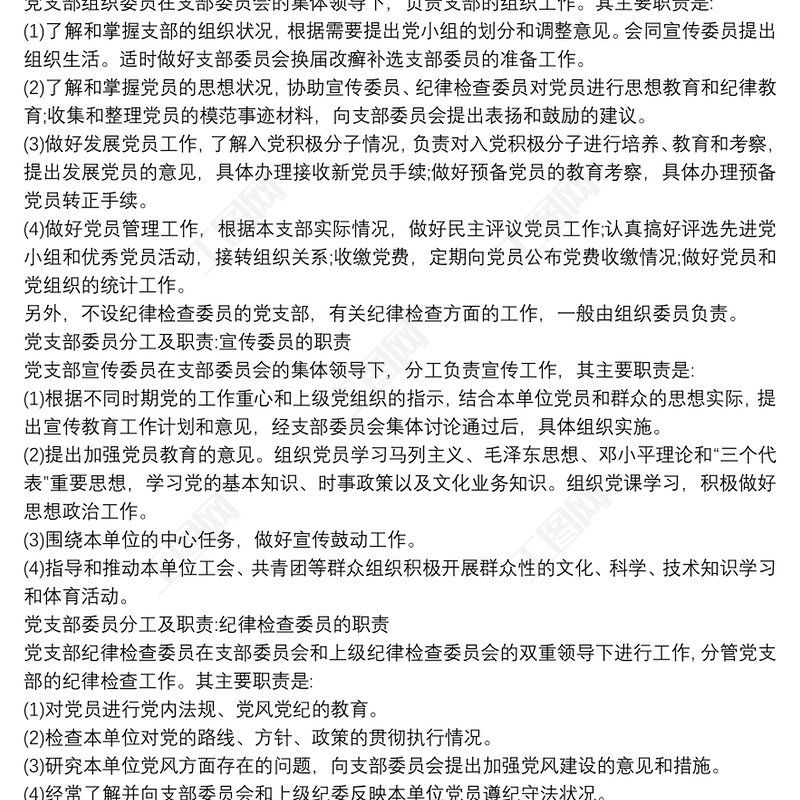 黨支部委員會(huì)分工及職責(zé) 黨支部委員分工的流程