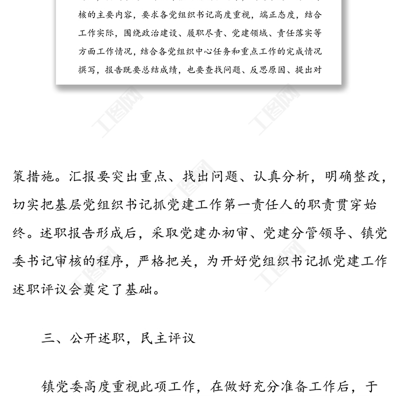 工圖網(wǎng)提供關(guān)于XX鎮(zhèn)2021年度黨組織書(shū)記抓黨建工作述職評(píng)議的開(kāi)展情況報(bào)告供會(huì)員免費(fèi)下載。更多精彩黨課PPT素材,盡在工圖網(wǎng)。
