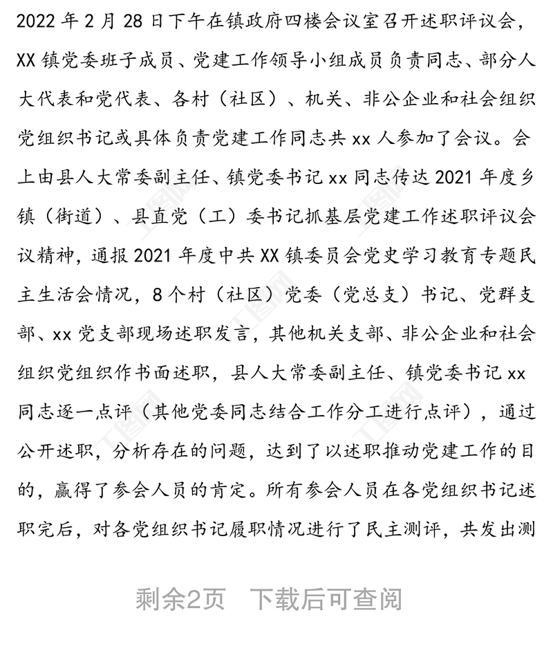 關(guān)于XX鎮(zhèn)2021年度黨組織書(shū)記抓黨建工作述職評(píng)議的開(kāi)展情況報(bào)告,關(guān)于XX鎮(zhèn)2021年度黨組織書(shū)記抓黨建工作述職評(píng)議的開(kāi)展情況報(bào)告 Array