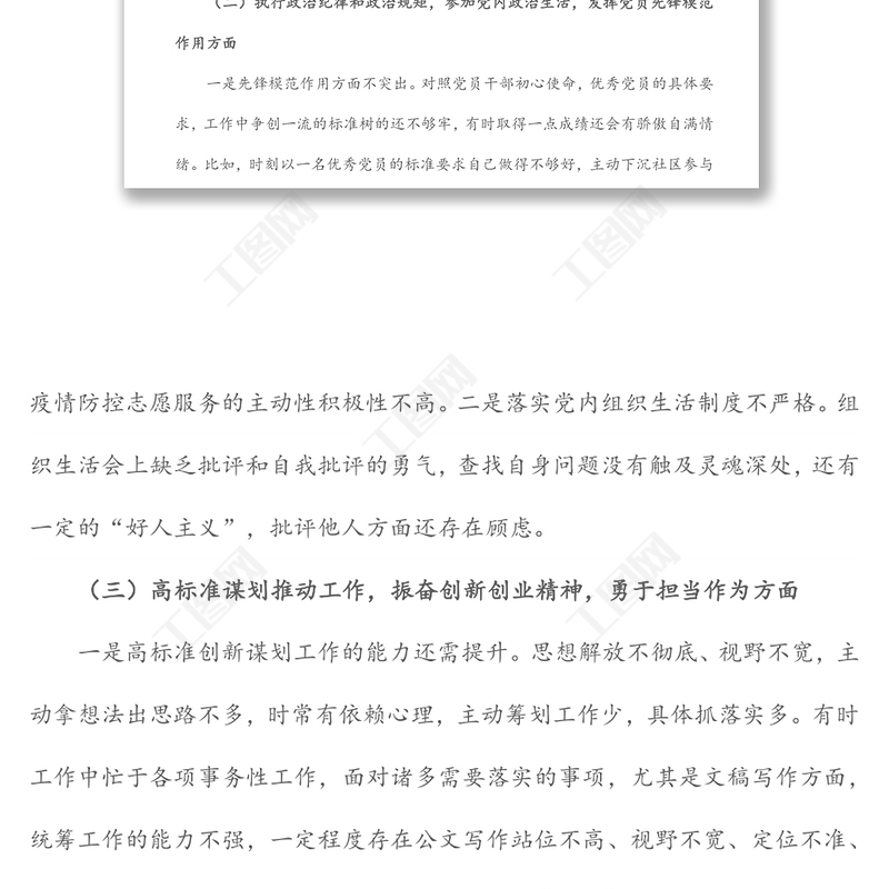 工圖網(wǎng)提供黨員干部“鑄忠誠、強(qiáng)擔(dān)當(dāng)”專題組織生活會對照檢查發(fā)言材料供會員免費(fèi)下載。更多精彩黨課PPT素材,盡在工圖網(wǎng)。